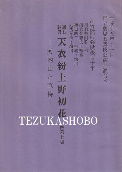 通し狂言 天衣紛上野初花 四幕七場 国立劇場上演台本 平成15年11月