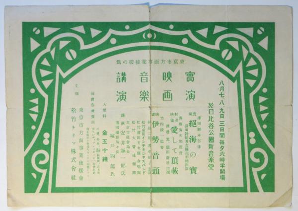 東京方面事業後援會「実演・映画・音楽・講演」チラシ