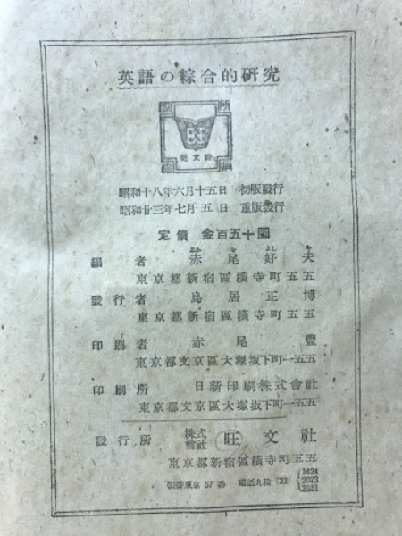 英語の綜合的研究 重版
