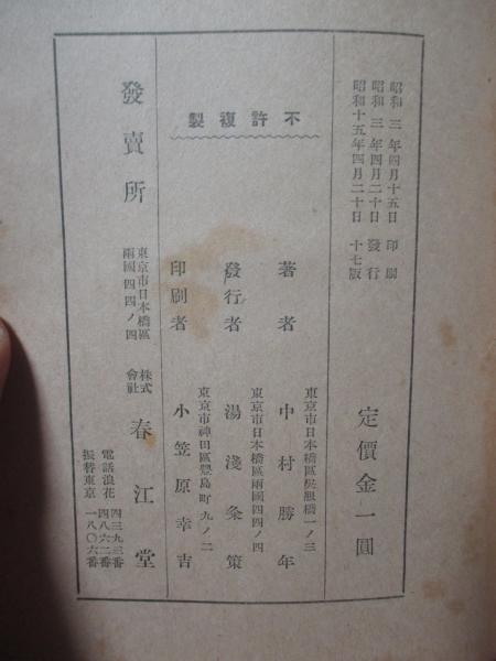 • 解説 外箱付き。写真掲載しているように、本の天と小口、ページの周縁部に、焼けと細かい茶色シミがあります。きれいな状態で読んでいただきたいので、外箱と本体に、OPPで透明カバーを巻いて、発送します(簡単に取れますし、本体に直接、接着しないので、跡が残ることもありません)。ご了解ください。本の中身に問題はありません。昭和15年発行・17版。ページ・カバー破れ、落丁、書き込みはありません。クリックポスト(追跡可能)で、即時発送します。宜しくお願いします。