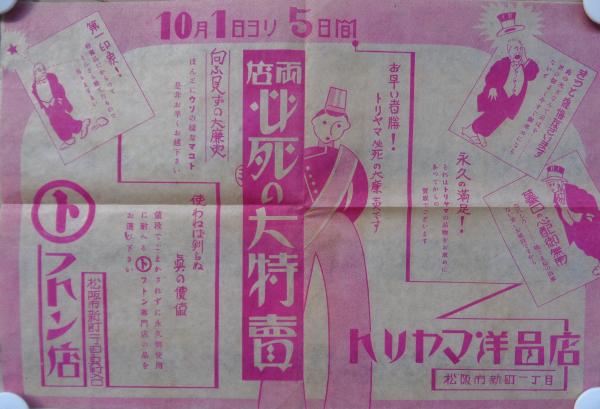 (戦前チラシ)トリヤマ洋品店/○ト フトン店 -両店必死の大特売-(三重県松阪市)