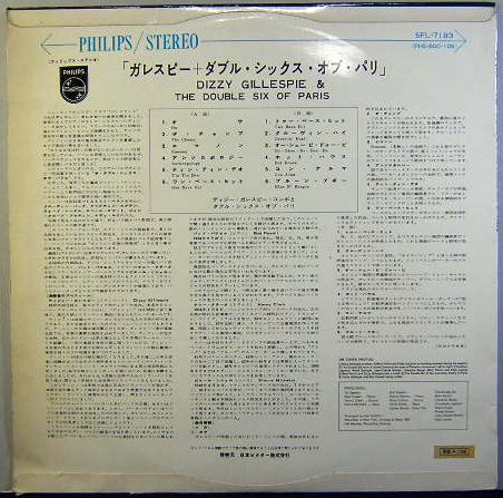LPレコード ディジー・ガレスピー+ダブル・シックス・オブ・バリ  DIZZY GILLESPIE& THE DOUBLE SIX OF PARIS