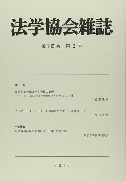 法学協会雑誌 = Journal of the Jurisprudence Association 27(11)