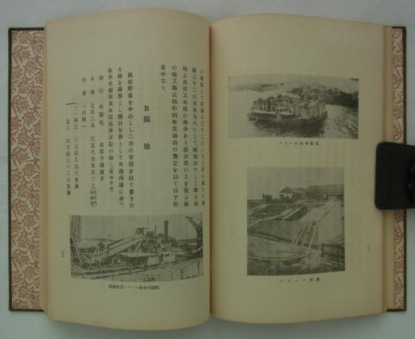 附録として港内諸費用・港湾関係諸法規・港湾関係官衙及業務者を所収、口絵と記事中に写真22景を所載する。