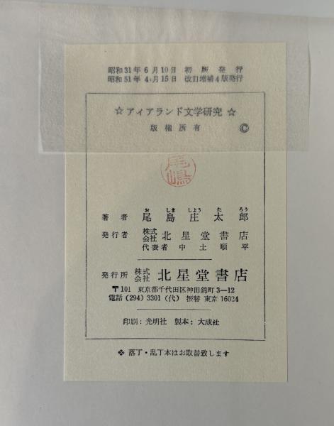 アイァランド文學研究 : 上代より現代にいたる 増補改訂4版