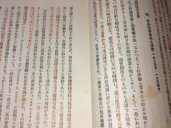 • 解説 函少スレ。函に記載のタイトルは「英国労働党の政策」となっていますが、本体及び奥付欄には「英国労働党の政策及現勢」となっていますので、こちらで紹介いたします(ただし記載は旧字)。巻頭付近を中心に線引きあり(写真参照)。全体的に経年によるヤケ、シミあり。通読は可能ですが、経年感、使用感あることからコンディション評価は「並下」といたしました。