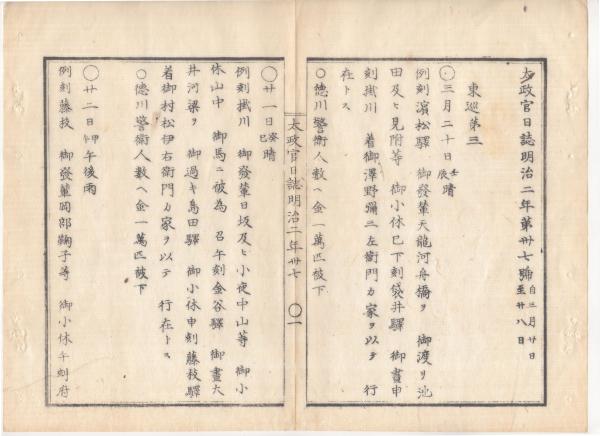 ※本号以後、太政官日誌は東京から発せらることとなった=太政官(明治政府中枢)は東京へ移転した