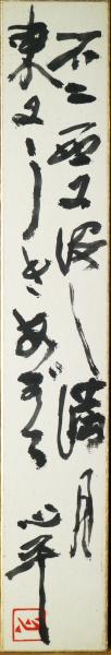 草野心平短冊 「不二西に没し満月東にうきあがる 心平・印」