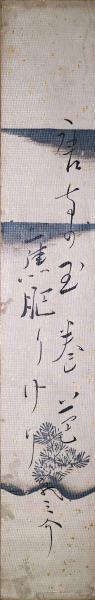 荷田春満(かだのあずままろ)短冊 「若草 草つかみ残る雪間の浅みどりまたふかしぬ野辺の色かな 春満」