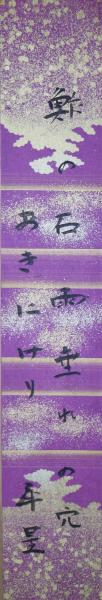 室生犀星短冊 「酢の石雨だれの穴あきにけり 犀星」