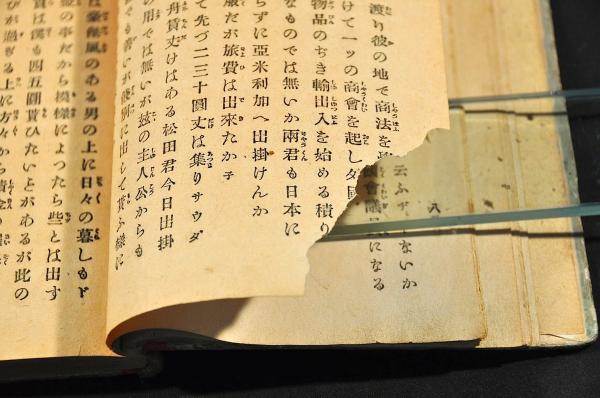 御尊家樣デ御用濟ニナリマシタ古本、雜誌ヲ弊店ヘ御賣リ下サイマスレバ夫レガ再ビ世ニ出テ役立チマス何卒御不用ノ書籍、雜誌ガ有リマシタラ何種ヲ問ワズ一册デモ結構デス弊店ヘ御拂下ゲ願ヒマス誠實ヲ旨トシテ必ズ御滿足ノ行ク樣勉強買受致シマス