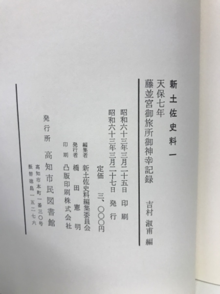 天保七年藤並宮御旅所御神幸記録 <新土佐史料 1>