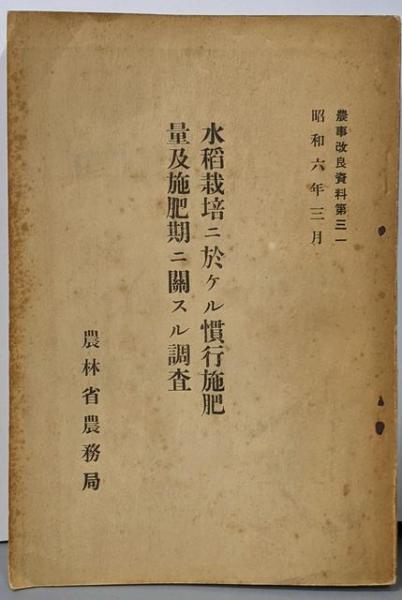 水稻栽培ニ於ケル慣行施肥量及施肥期ニ關スル調査/農事改良資料第31 昭和6年3月