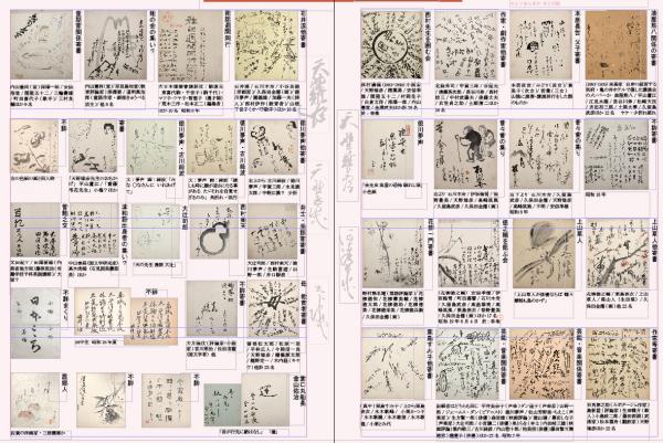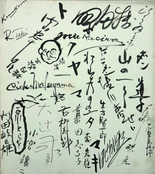 • 解説 ◆油屋熊八関係寄書-熊八/平山蘆江/江見水蔭/長谷川伸/松崎天民/吉田初三郎/土屋大夢/久留島武彦 少折れ破 ◆本居長世父子寄書-長世/みどり/貴美子/若葉 ◆作家寄書―北條秀司/甲賀三郎/谷屋充/清瀬英次郎/長谷川伸/西村皎三/中村武羅夫/俵藤丈夫/衣笠貞之助/土師清二 ◆西村先生を囲む会-西村濤蔭/天野/樫葉勇/安倍季雄/関屋五十二/村岡花子/白倉文洋/深澤一郎/内山憲堂/金澤武夫 ◆昔々會の集り-石川木舟/武彦/久保田金僊/天野/高峰筑風/不明/安倍季雄 ◆昔々會の集り-木舟/伊坂梅雪/笹野豊美/天野/筑風/武彦/金僊 ◆徳川夢声 ◆上山草人他寄書-花柳徳之輔/栗島狭衣/草人/葵山人(生田葵)/金僊他 ◆上山草人 ◆徳之輔を偲ぶ会-(花柳徳之輔)季雄/梅雪/町田嘉聲/木舟/武彦/高畠華宵/筑風/栗島狭衣/豊美/金僊 ◆花柳一門寄書-野村無名庵/花柳徳弥/壽美輔/徳太郎/徳助/德紫/徳栄美/徳兵衛/金僊 ◆作家等寄書-石角春之助/島影盟/生田蝶介/小島政二郎/藤田西湖/松本雲舟/天野 ◆芸能音楽関係寄書(2種)―平井美奈子/ダン道子/山野一郎/ジェームス・ダン/夢声/松山芳野里・ちえこ/生方賢一郎/森岩雄/徳山璉/幕田しな子/大辻司郎/小宮譲二/泉とらを/内田岐三雄/堀内敬三/緑波/内山惣十郎/柏美枝/藤田繁?/瀧蓮子 ◆栗島すみ子他寄書-すみ子/狭衣/水木歌峰/歌鏡/歌澄/歌龍/小栗かつ子//小栗とみ代 ◆石井漠他寄書-漠/木舟/小谷良徳/金僊/夢声/園義雄/加藤一夫/西村伊作/山根千世子 ◆雑誌週間同行-東喜代駒・千世子(駒千代) /荒木三作・松本正二 ◆雉の会の集い?-内山憲尚/奈良島知堂/深澤要/道明真治郎他 ◆童話家関係寄書-憲尚/深澤一郎/安倍梧堂/五十二/三輪壽雄/町田喜代子/三村良輔 ◆夢声他寄書-緑波/夢声/甲賀三郎/永見徳太郎/中野江漢? 少折 ◆夢声・緑波(2種)◆寄書-「天野雉彦先生のおもかげ」平山蘆江/「齋藤弔花先生」小梅? ◆漫談家寄書-司郎/楽天/夢声/生駒雷遊/一郎/井口靜波 ◆西村楽天 ◆大辻司郎 ◆津和野出身の集い?-中山泰昌/高木虎槌 ◆管鮑之交-太田紀?/田澤要雄/藤原侃治/大塚? ◆教育者寄書-曽根松太郎/松原一彦/平林広人/今岡信一良/天野/棚橋源太郎/龍野定一/木内経(キヤウ) ◆不詳寄書-大月隆仗/宮川照治/佐伯常