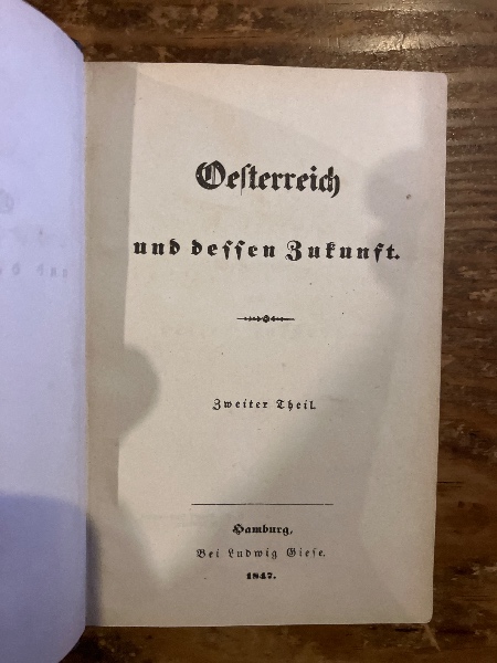 (独)オーストリアとその未来 著者匿名(ヴィクトール・フランツ・フォン・アンドリアン=ヴェルブルク)ハンブルク、ホフマン&カンペ出版及びルートヴィヒ・ディーゼ出版、1843年第二版及び47年刊第二部、2冊 [ANDRIAN-WERBUNG, Victor Franz von] Oesterreich und dessen Zukunft. Hamburg, Hoffmann und Campe & Ludwig Diese, 1843-47.