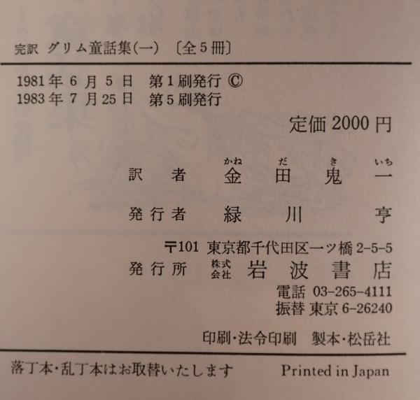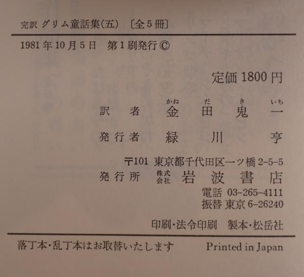 • 解説 書名:完訳 グリム童話集 全5巻揃