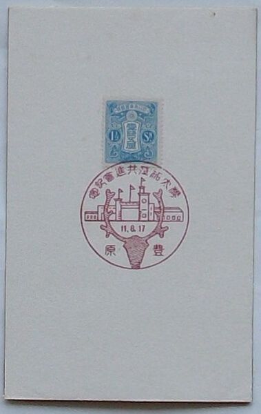 23×22mm エンタイア 私製はがき台紙付 未使用 豊原 消印 状態良