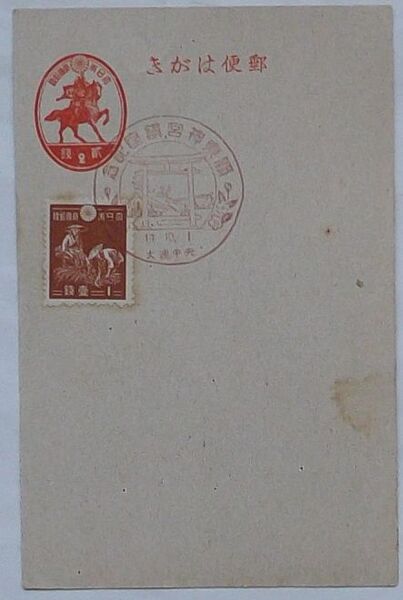 大日本帝国郵便普通切手 「関東神宮鎮座記念」スタンプ付 1銭
