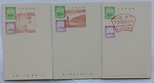 満洲帝国郵政、1942(康徳9)、ハガキ、3枚