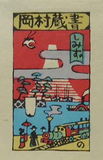 山高登 木版蔵書票 「開花の清水港風景」