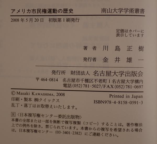 • 解説 書名:アメリカ市民権運動の歴史 : 連鎖する地域闘争と合衆国社会