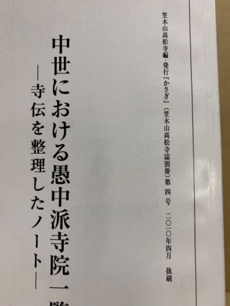 中世における愚中派寺院一覧 <笠木山高松寺誌別冊 4号(抜刷)>
