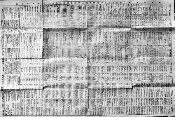官公私立高等専門学校入学試験要項綜覧表 特大判93.5×63㎝両面印刷 帝国学事部編 弘道閣 昭和9年