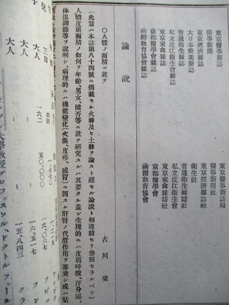 • 解説 古川榮:人體ノ面積ニ就テ、ほか。