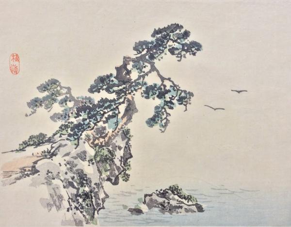 幸野楳嶺木版画 海辺の貝