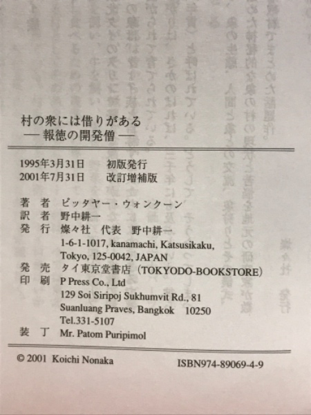 • 著者 ピッタヤー・ウォンクン 著 野中耕一 編訳