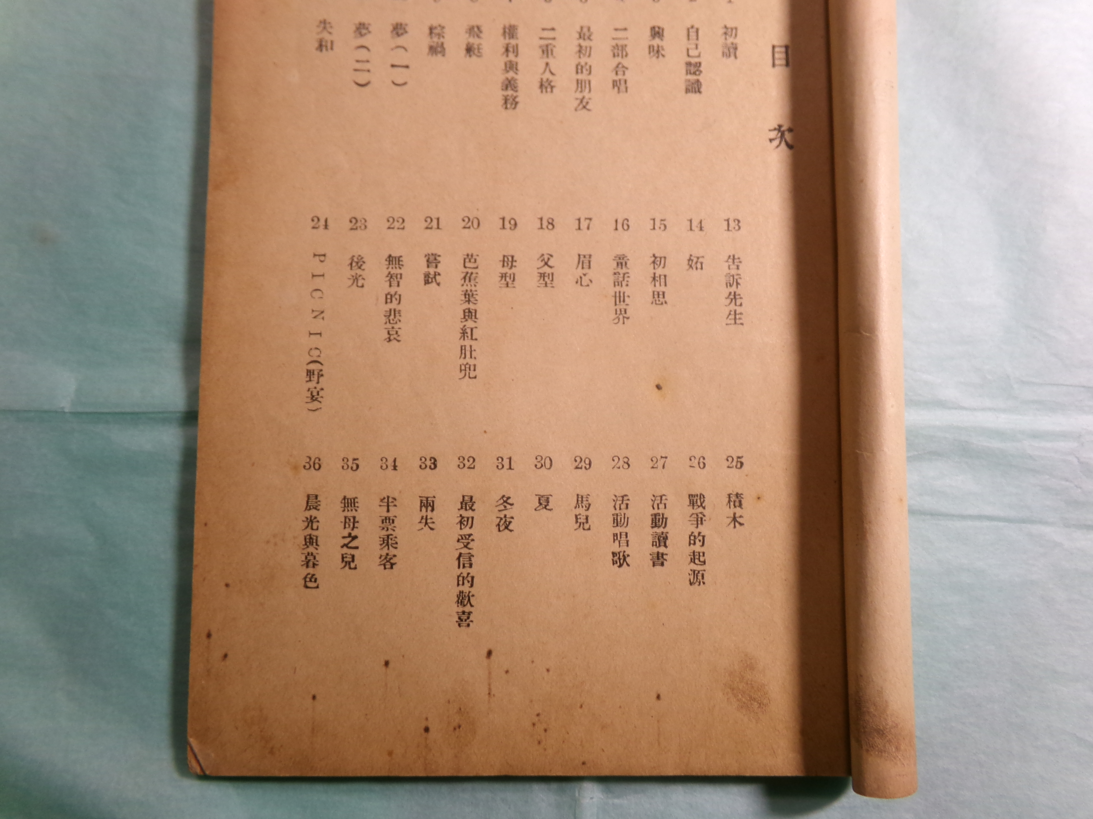 • 解説  全36点の収録漫画中、最後の36点目「晨光與暮色」という画と裏表紙(奥付)が欠の不全本。
