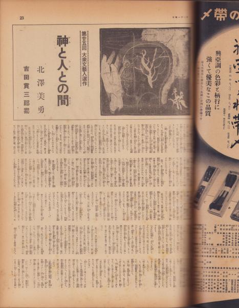 • 著者 〈動乱の欧洲 モノクロ1頁〉〈美術の秋 -文展- モノクロ2頁〉〈映画物語「リボンを結ぶ夫人」東宝東京作品 演出・山本薩夫 2頁〉〈実話・罪はいづこに? -チブス饅頭事件公判- 2頁〉、白井喬二、北澤美勇、宮田重雄、大佛次郎、伊集院齊、畠山久尚
