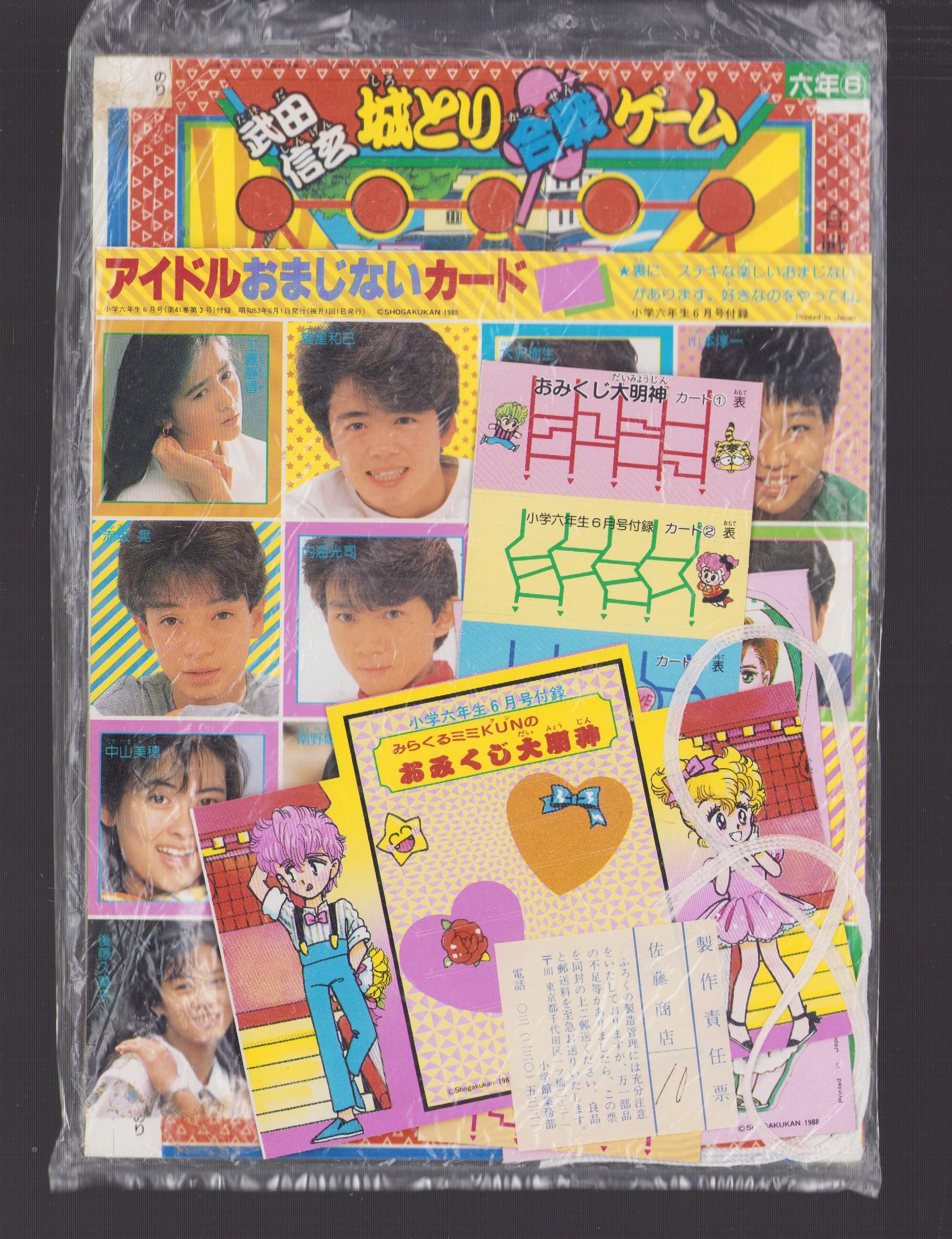 (付録)武田信玄城とり合戦ゲーム/アイドルおまじないカード/みらくるミミKUNのおみくじ大明神ほか 5点一括 -小学六年生昭和63年6月号付録-