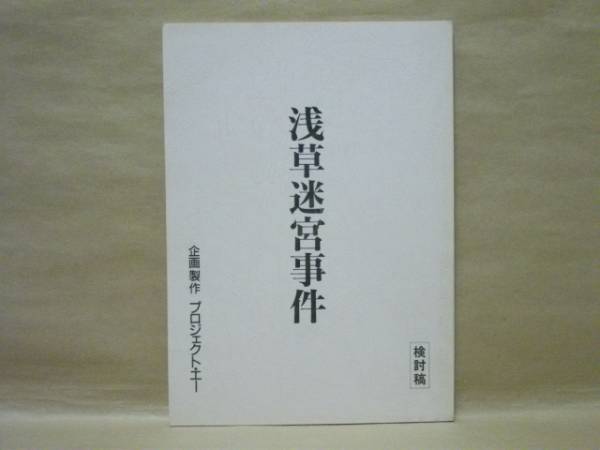 浅草迷宮事件 検討稿 (製作年度、公開年度等の記載なし) 企画製作:プロジェクト・エー 原作:佐江象一(佐江衆一の誤植?) 脚本・監督:下村優 キャスト:(記載なし) 、1
