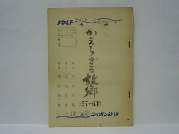 かえらざる故郷 第57~63回 放送:昭和41年7月6~13日 制作:ニッポン放送 原作:丹羽文雄 ・・・