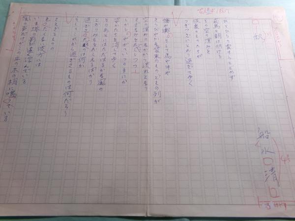 船水清詩稿4篇「秋」1枚「夜陰抄」1枚「竪琴」1枚「旅信」1枚