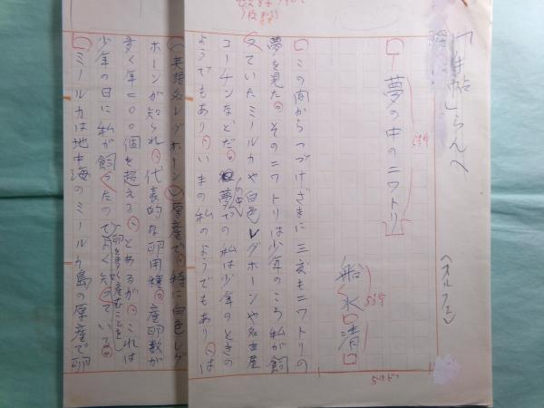 船水清草稿「夢の中のニワトリ」6枚