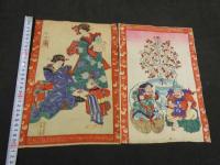 【真作】玉英画 金のなる木(仮) 他辰 ちりめん 彩色木版刷 1枚 30.5×22㎝ 上下2枚?
