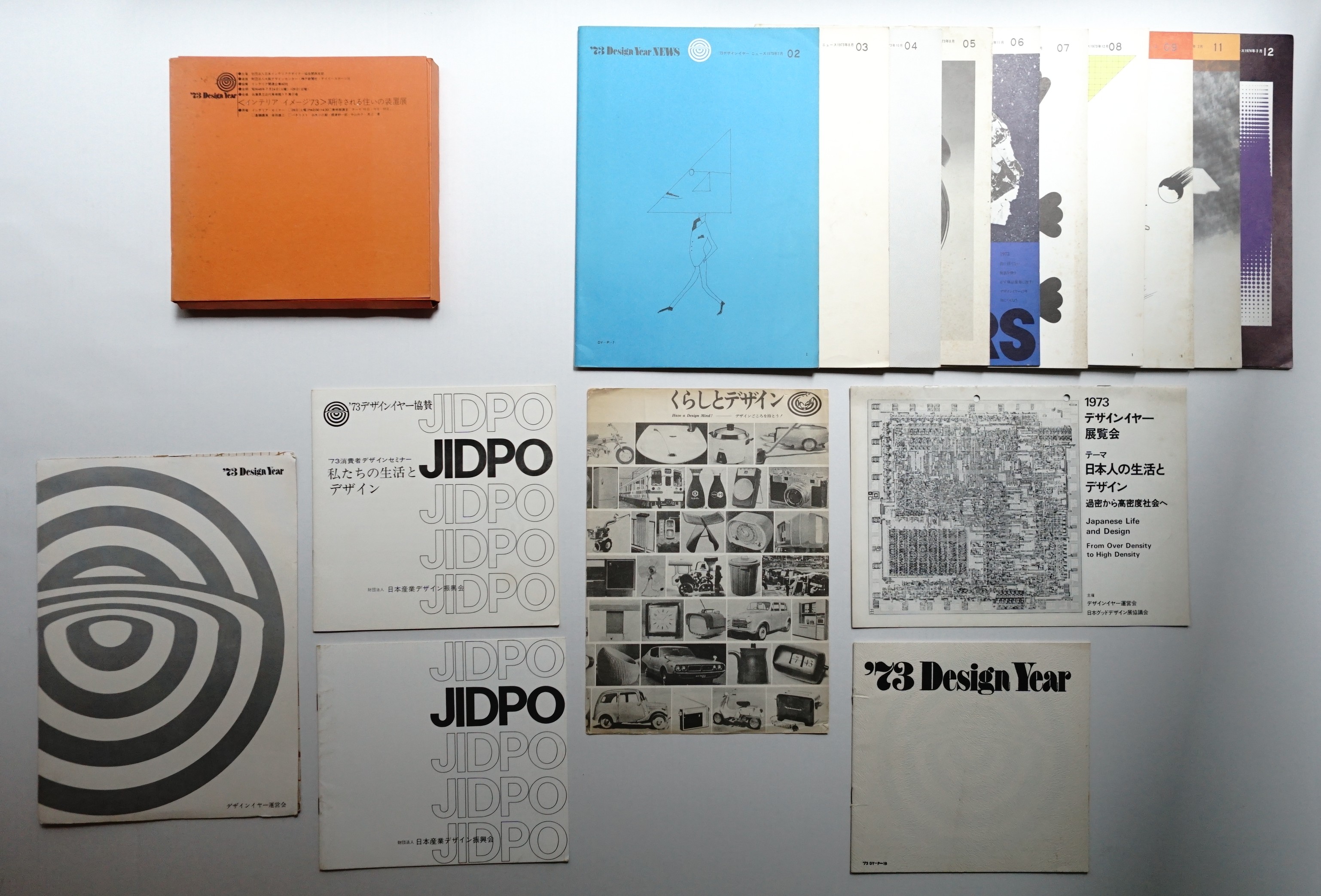 ①'73 Design Year ②73 デザインイヤー ニュース ③'私たちの生活とデザイン〈'73消費者デザインセミナー〉 + JIDPO〈日本産業デザイン振興会〉 ④1973 デザインイヤー 展覧会 〈日本人の生活とデザイン 過密から高密度社会へ〉 ⑤〈インテリア イメージ'73〉期待される住いの装置展 ⑥くらしとデザイン