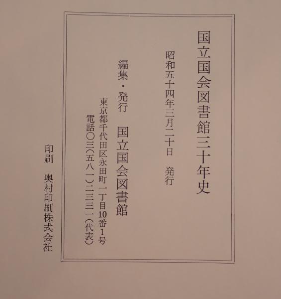 • 解説 書名:国立国会図書館三十年史