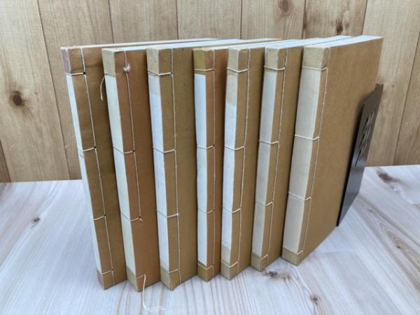• 解説 1冊劣化多数(傷みシミ、余白傷み劣化他)/6冊は並(小口ヨゴレ・一部シミ・2冊背シミヨゴレ?/1冊綴じ紐劣化) [ID:M94365]