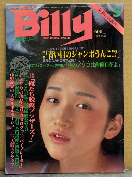 スーパー変態マガジン 月刊 ビリー Billy 1982年5月 中村絵美・山中千津子・土屋まゆみ・佐々木こずえ・フィストファック 藤沢ルミ・糞尿放食・新宿25時・M男入門講座・トルコ嬢・カメラ小僧・スカトロ・バイブレーターカタログ・宇野萬 他