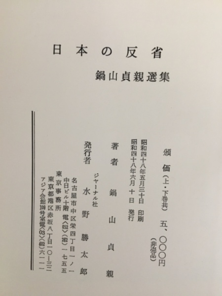 日本の反省 上下巻揃 <鍋山貞親選集>