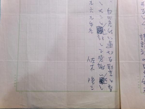 佐木隆三草稿「『島に生まれて』(1969年談社刊)あとがき」3枚完