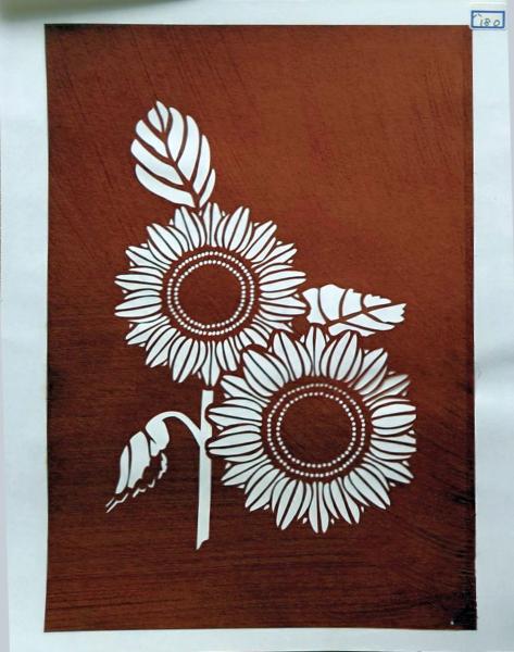 D26020180〇伊勢型紙 手彫り ひまわり 向日葵 アート 伝統和紙工芸 貼り絵 切り絵 昭和レトロ インテリア〇和本古書古文書