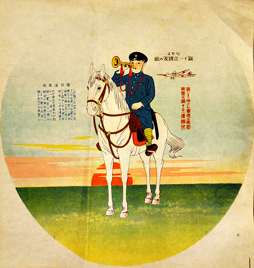 「心せよ漏す一言国家の敵(国民進軍歌入)」27×25.5㎝ カラー印刷折目有り美品 戦中戦時