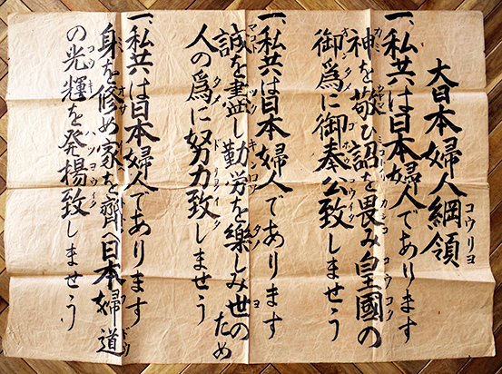「大日本婦人綱領」茶紙に墨書ポスター 105×76㎝ 戦中戦時