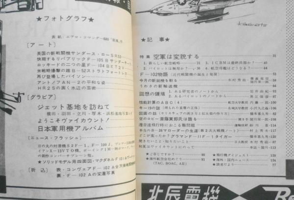 ジェット基地を訪ねて/横田・羽田・立川・厚木・浜松基地写真ルポ ようこそヴァイカウント! 日本軍用機アルバム 特集/空軍は変貌する 1/新しい航空戦略 2/パイロットは無用か? 3/ICBMは最終兵器か? 4/航空母艦はどうなる? F-102物語(近代戦闘機の誕生と発展) 回想の鍾馗/1・ある研究者のノートから/2・あるパイロットのノートから 他