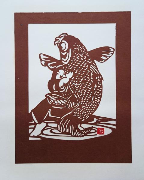 D20020000〇伊勢型紙 手彫り 金太郎の抱き鯉「立身出世」「勇気」「健康」アート 伝統和紙工芸 貼り絵 切り絵 昭和レトロ インテリア〇和本古書古文書