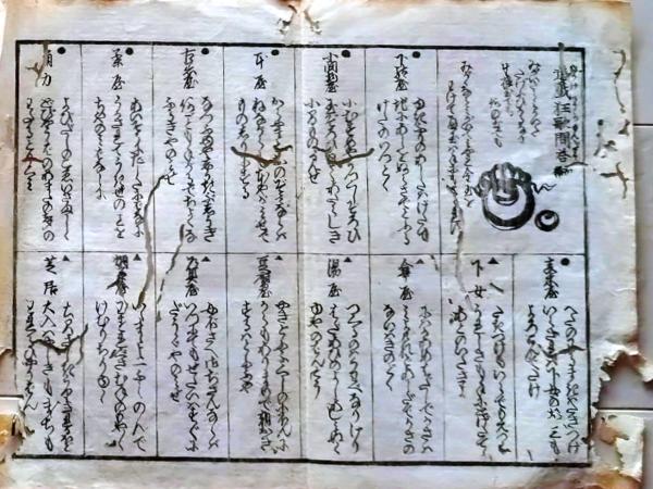 D26022309〇一枚刷り 和紙木版 江戸自慢 雑談競 三つ子魂百 水天宮 ことば遊び しゃれ なぞ 判じ絵 見立番付 江戸末期〇和本古書古文書 一枚刷り 和紙木版 江戸自慢 雑談競 三つ子魂百 水天宮 ことば遊び しゃれ なぞ 判じ絵 見立番付 江戸末期〇和本古書古文書 200x160mm 1丁 虫損 汚れ 破れが有ります